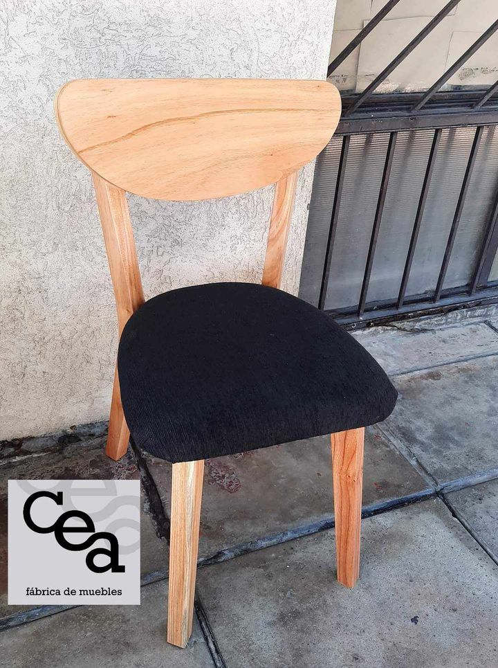 Modelo de diseño moderno y elegante, fabricada en madera maciza de alta calidad. Cuenta con respaldo curvo que brinda mayor comodidad y un estilo distintivo. El asiento tapizado en tela negra aporta contraste y confort, ideal para uso diario. Sus patas firmes y resistentes aseguran estabilidad, convirtiéndola en una opción perfecta para comedores, livings o espacios modernos.